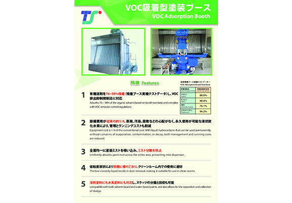 The TS Scrubber System is a wet air purification system designed to effectively eliminate paint mist and solvent odors emitted from paint booths. This system utilizes two specialized chemicals—TS1502 and TS1400—to efficiently capture and absorb harmful substances from exhaust air.