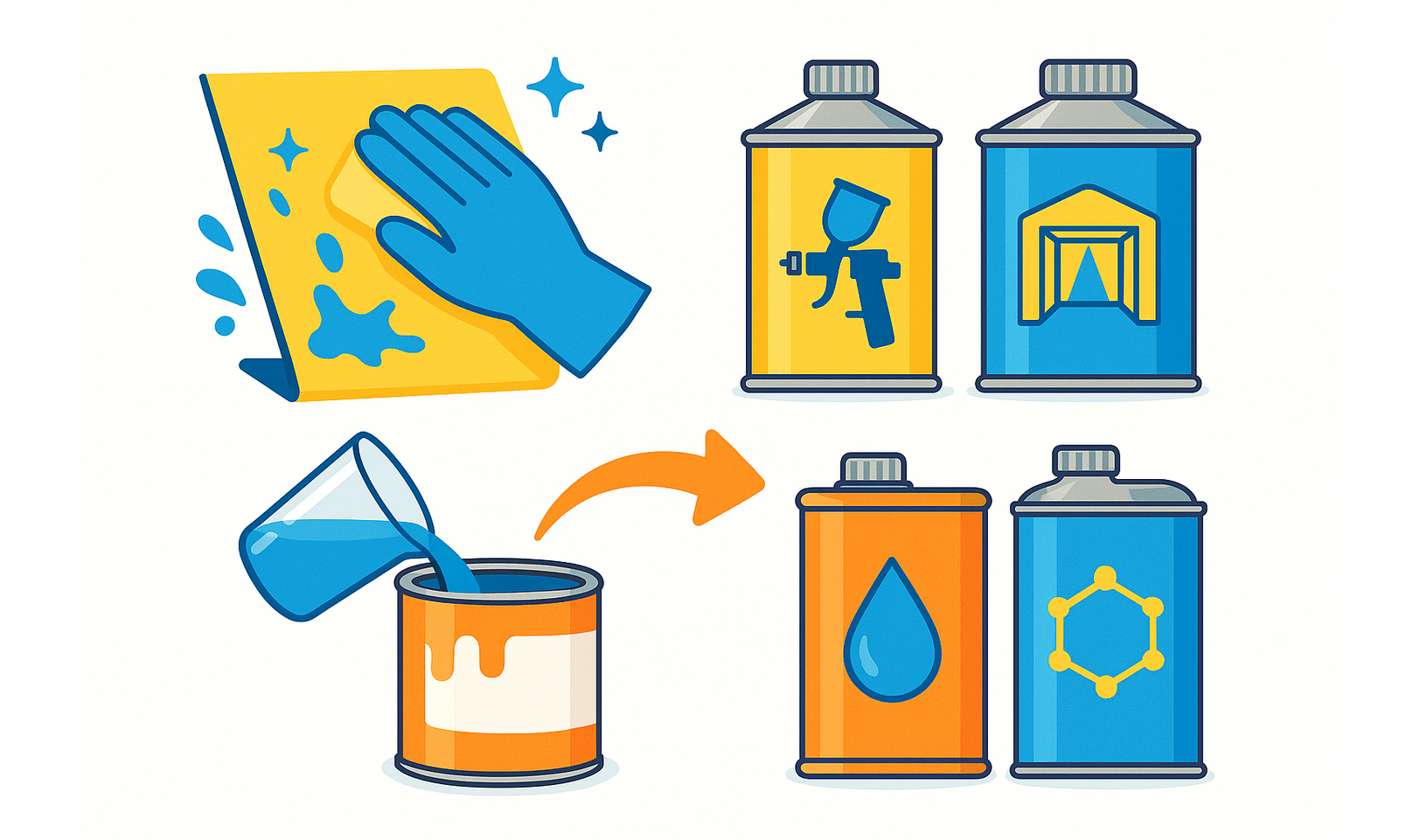 ในงานพ่นสีอุตสาหกรรม น้ำยาล้างและทินเนอร์เป็นอุปกรณ์เสริมที่หลายคนอาจมองข้าม แต่จริงๆ แล้วเป็นส่วนสำคัญที่ช่วยให้ชิ้นงานออกมาสวย แข็งแรง และช่วยยืดอายุการใช้งานของอุปกรณ์พ่นสี ถ้าเลือกไม่เหมาะสม อาจเกิดปัญหาเช่น สีหลุดง่าย คราบสกปรกติดผิวงาน หรืออุปกรณ์อุดตันเร็ว ทำให้ต้องซ่อมบ่อย เสียเวลาและค่าใช้จ่ายเพิ่มขึ้น