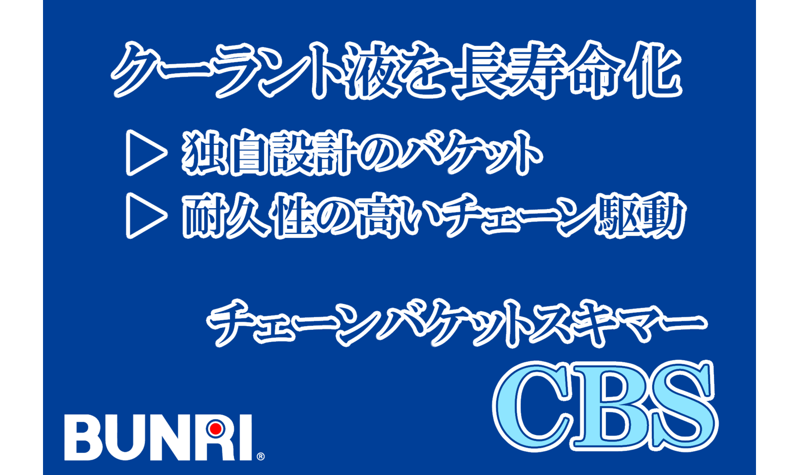 ブンリのチェーンバケットスキマー CBSは、浮上油やスカムだけを効率的に回収。クーラント液の劣化を抑えることで、クーラント液の長寿命化に大きく貢献します。