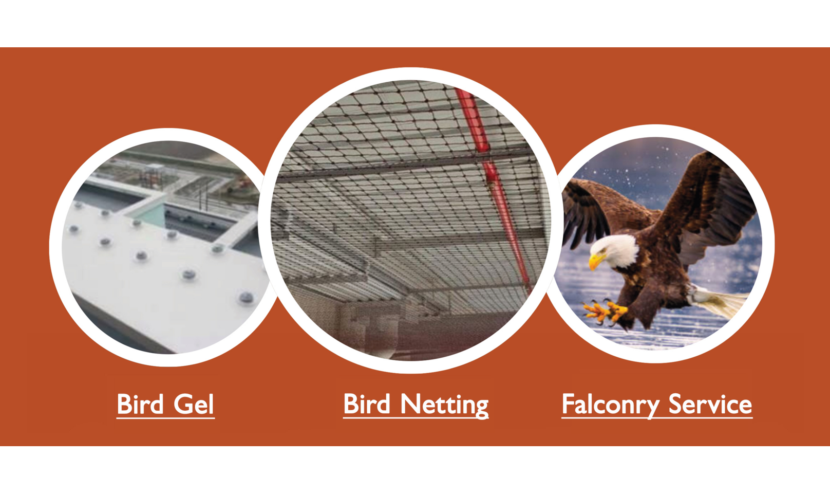- Three core solutions: Bird Netting / Bird Gel / Falconry
