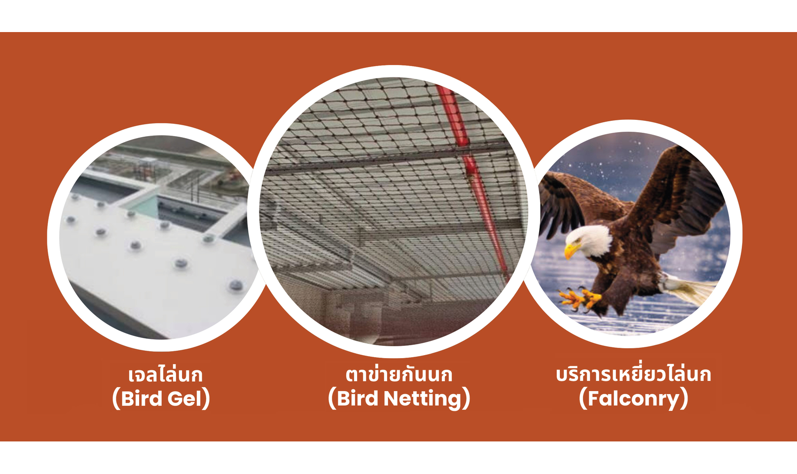 - ครอบคลุม 3 ระบบหลัก: Bird Netting / Bird Gel / Falconry