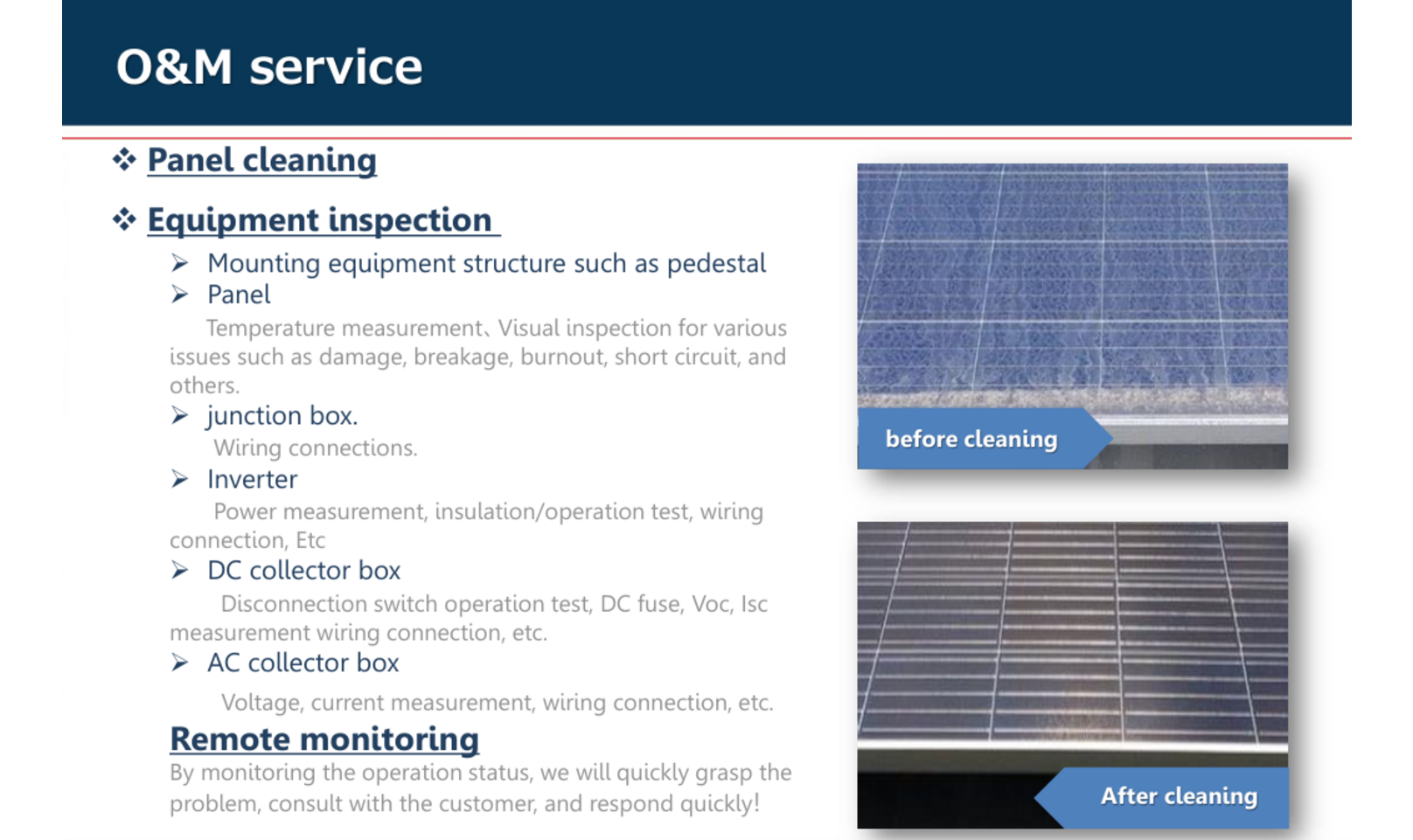 Dirt accumulation and unnoticed equipment issues can reduce solar output by 10–30%, leading to unnecessary financial loss. To ensure peak performance and long system life, professional Operation & Maintenance (O&M) services are critical.
