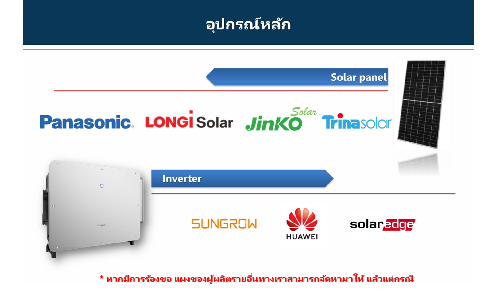 ✅ ลูกค้าที่ต้องการ ความยืดหยุ่น ในการเลือกอุปกรณ์โซลาร์