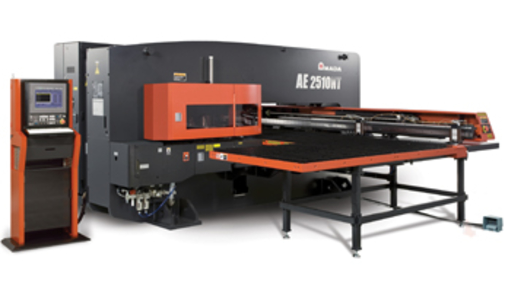 AE-NT シリーズは、ACサーボ・シングルドライブによるタレットパンチプレスであり、AMADA独自の高剛性ブリッジフレームを搭載しています。これにより、高速かつ高精度なパンチング加工を実現しつつ、消費電力を削減できます。4×8フィートの板材に対応しており、省スペース設計でスピードと品質を求める生産現場に最適です。
