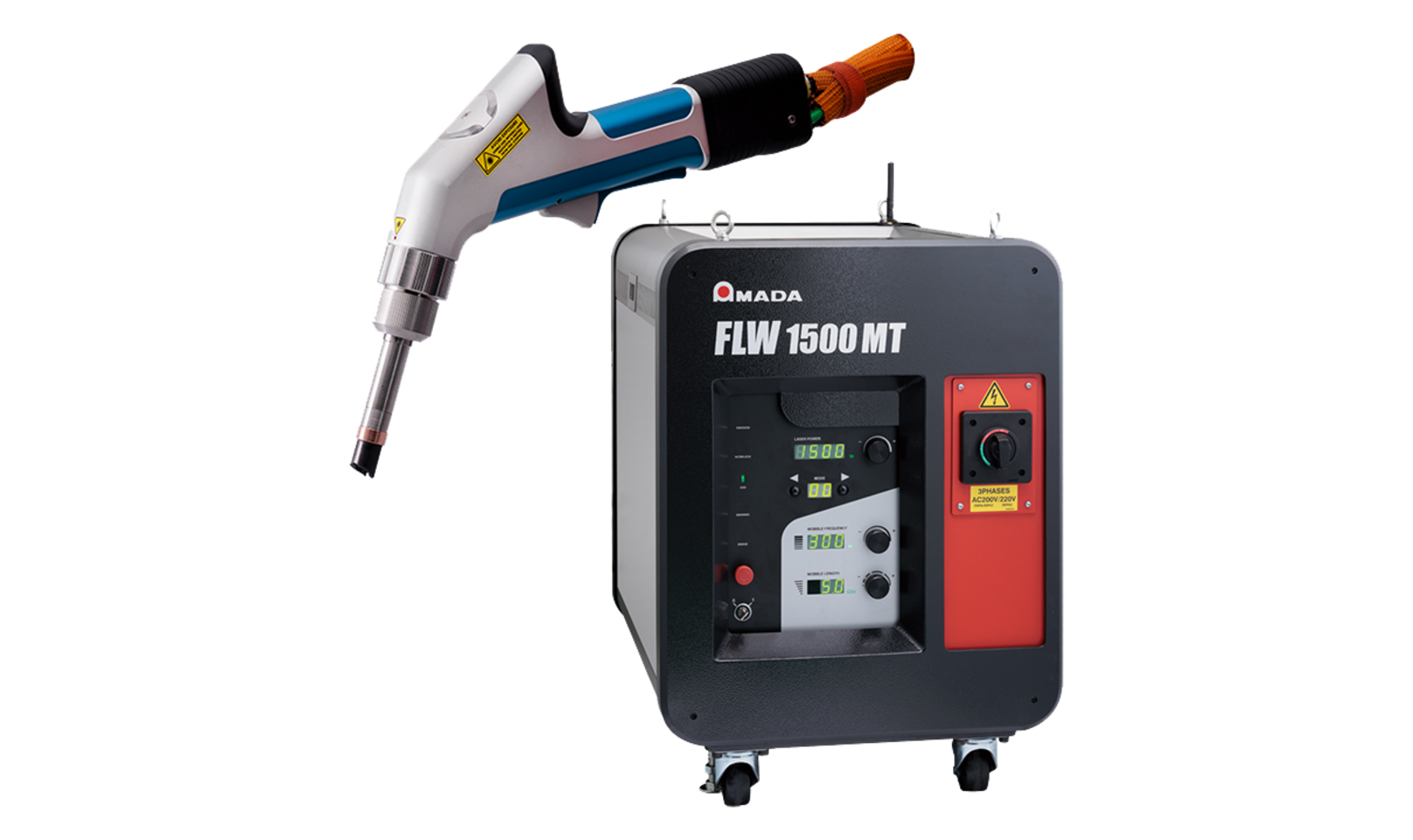 FLW-1500MT は、FLW-MT シリーズの最新モデルで、出力1,500W を搭載しています。作業エリアが広く、複雑なワークにも対応可能です。さらに、新開発のウォブリング機能により、ビード幅を調整でき、薄板・厚板どちらの溶接にも適しています。