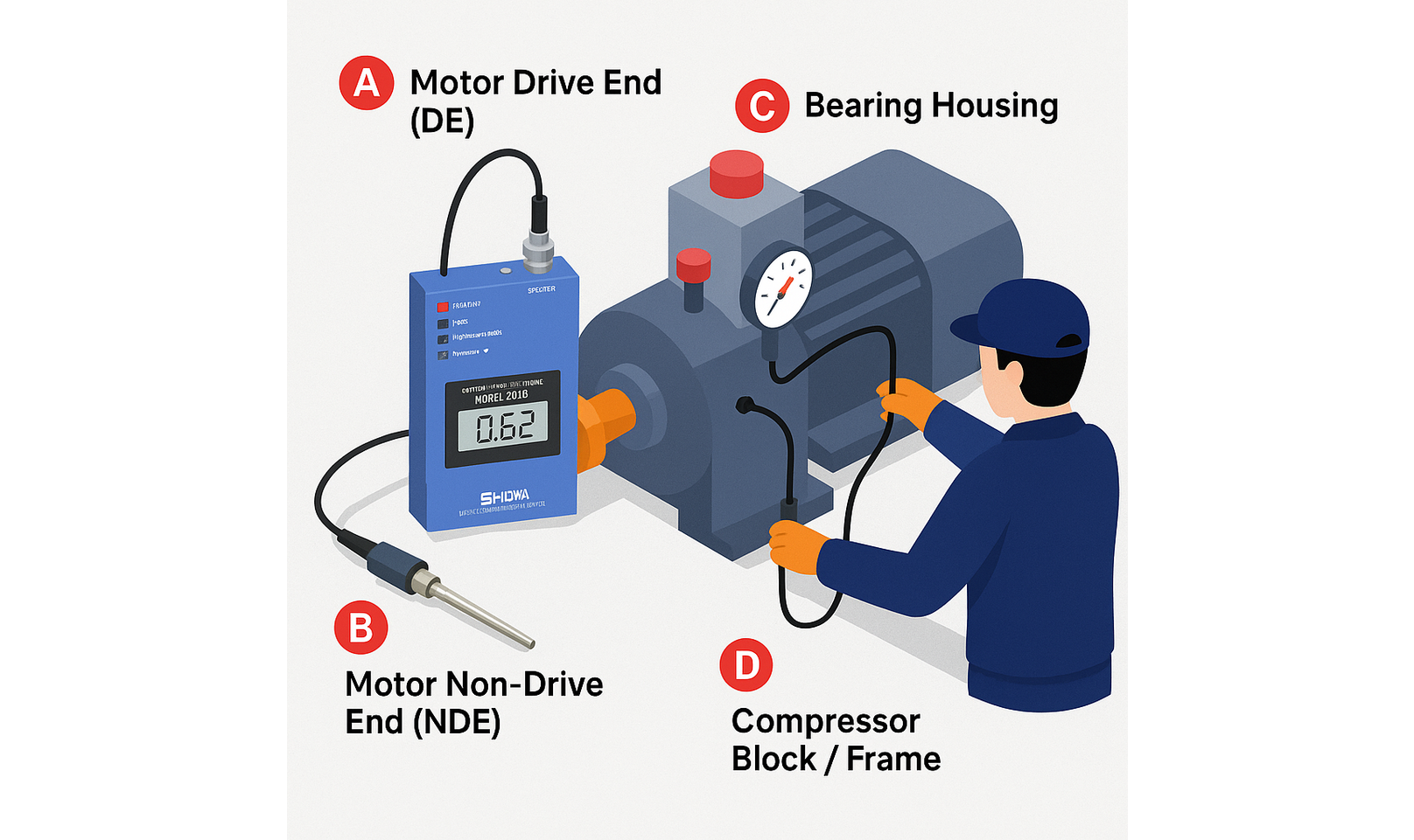 - DE / NDE / Bearing Housing เป็นตำแหน่งสำคัญที่ต้องเก็บข้อมูลทุกครั้ง