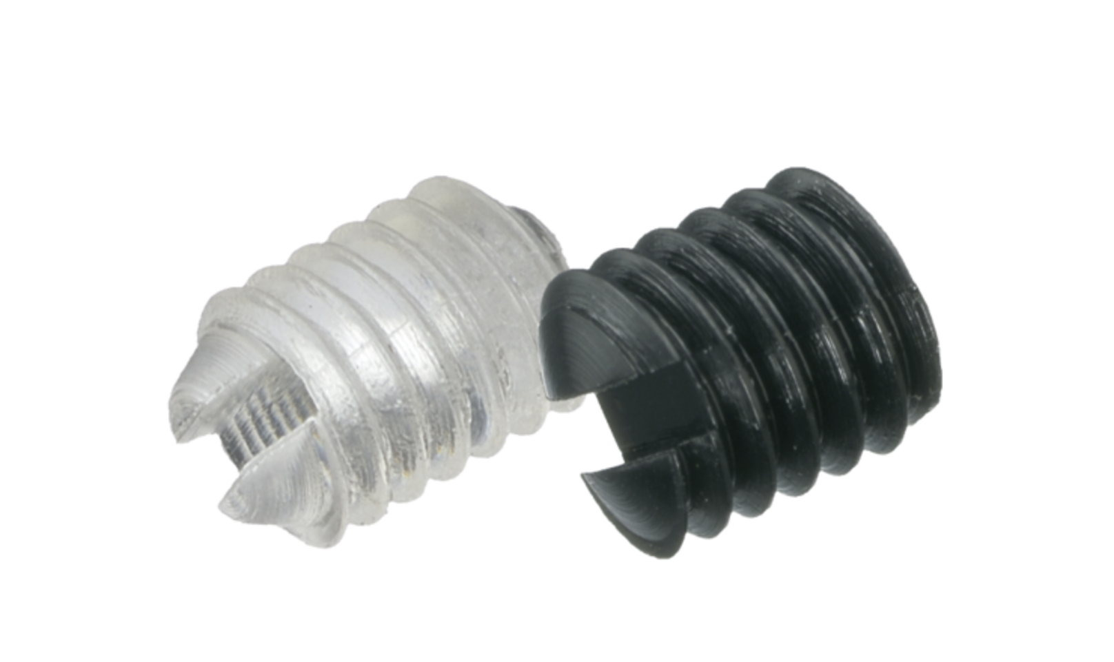 PC/SS は、イモネジ(頭部なしのセットスクリュー)で、ポリカーボネート(PC)製の高機能樹脂ファスナーです。最高使用温度は115℃、絶縁性・軽量・透明性に優れ、限られたスペースやヘッドの突出が望ましくない箇所での使用に最適です。電子機器、小型装置、医療機器などに広く活躍します。