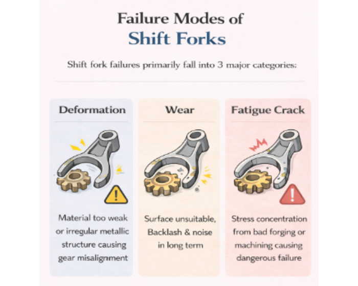 🌟 Key Takeaways • シフトフォークの不具合の多くは、使用方法ではなく材料と製造プロセスに起因する • 主なFailure Modeは、変形・摩耗・疲労亀裂である • 鍛造、CNC加工、熱処理は一体として設計する必要がある • 上流工程での予防が、修理コストと長期Warrantyリスクを低減する ーーーーーーーーーーーーーーーーーーーーーーーーーーーーーーー マニュアルトランスミッションにおいて、シフトフォークは変速操作による繰り返し荷重を直接受ける部品である。わずかな損傷でも、シフトフィーリング、異音、駆動系全体の寿命に影響を与える。現場では使用上の問題とされがちだが、実際の原因は材料設計や製造プロセスにある場合が多い。 ________________________________________ Problem Framing:Reliability & Warranty シフトフォークの不具合は、部品単体にとどまらず、NVH、顧客満足度、Warrantyコストにまで影響する。下流のみで対策すると、高コストかつ持続性のない改善となる。 シフトフォークの主なFailure Mode シフトフォークのFailureは、次の3つに分類できる。 • 変形(Deformation): 材料強度不足や金属組織の不均一により、ギア押圧位置がずれる。 • 摩耗(Wear): 表面性状や表面硬度が不適切な場合、バックラッシュや異音が発生する。 • 疲労亀裂(Fatigue Crack): 鍛造や加工管理不良による応力集中部から発生し、発生時の影響が大きい。 ________________________________________ Root Cause Chain:MaterialからProcessへ これらのFailure Modeは、以下の原因が連鎖して発生する。 • 荷重条件に合わない合金材料の選定 • 結晶粒流れを制御しない鍛造 • 鋭角部や残留応力を生むCNC加工 • 過度な硬化や脆化を招く熱処理 いずれか一つの不具合が、実使用でのFailureにつながる。 ________________________________________ Method:プロセス起点の予防 Failure低減は製造の上流から始まる。 • 実負荷に適した材料選定 • 構造強度を高める鍛造 • 精度と表面品質を両立したCNC加工 • 硬さと靭性のバランスを考慮した熱処理 • 寸法・表面の定期的品質確認 ________________________________________ Evidence:耐久性の観点 製造実績から、工程段階でFailure Modeを管理したシフトフォークは、寿命が長く、OEMにおける保証クレームも大幅に低減している。 ________________________________________ Implication & Next Step 下流のみのFailure対策は、NVHやWarrantyの隠れたコストを増加させる。持続可能な解決策は、Failureを未然に防ぐ工程設計である。次の段階は、Failure Modeを設計レビュー、Process FMEA、品質管理計画と連携させることである。 ________________________________________ 📘 Summary 耐久性の高いシフトフォークは、材料だけでなくFailureを防ぐために設計された工程から生まれる。Failure Modeの理解は、リスク低減、信頼性向上、そして自動車業界での競争力につながる。 📥 CTA 実製造への応用については、Siam Asahi Manufacturing Co., Ltd. のCore ContentおよびBasic Knowledgeの参照、またはProduction Engineering・Quality Assurance部門への問い合わせを推奨する。 ーーーーーーーーーーーーーーーーーーーーーーーーーーーーーーー ❓ FAQ Q:シフトフォークのFailureはどこから始まることが多いか? A:材料選定や製造プロセスから始まり、使用段階で顕在化する。 Q:軽微な摩耗でも問題になるか? A:蓄積すると、ギア精度や異音に大きく影響する。 ________________________________________ 📚 Glossary(用語集) • Failure Mode: 部品の損傷形態 • 変形(Deformation): 強度不足による曲がり • 疲労亀裂(Fatigue Crack): 繰り返し応力による亀裂 • Process FMEA: 製造工程のリスク分析 ________________________________________ 📖 Reference Shift Fork Failure Analysis & Process Control Guideline – Production Engineering / QA Department, Siam Asahi Manufacturing Co., Ltd. (N/A) – Internal Validation ________________________________________ 🔗 Cluster Internal Link • Core Content:https://prime.nc-net.com/89878/ja/product/detail/242356 • Basic Knowledge:https://prime.nc-net.com/89878/ja/product_others/detail_goods/27749 ________________________________________ 🔒 Trust 本コンテンツは、Siam Asahi Manufacturing Co., Ltd. により学術的・技術的な正確性が確認されています。 ________________________________________ #ShiftFork #FailureMode #ManufacturingProcess #Forging #CNC加工 #HeatTreatment #自動車工学 #品質保証 #信頼性工学 📆 Updated: 2026-1-6
