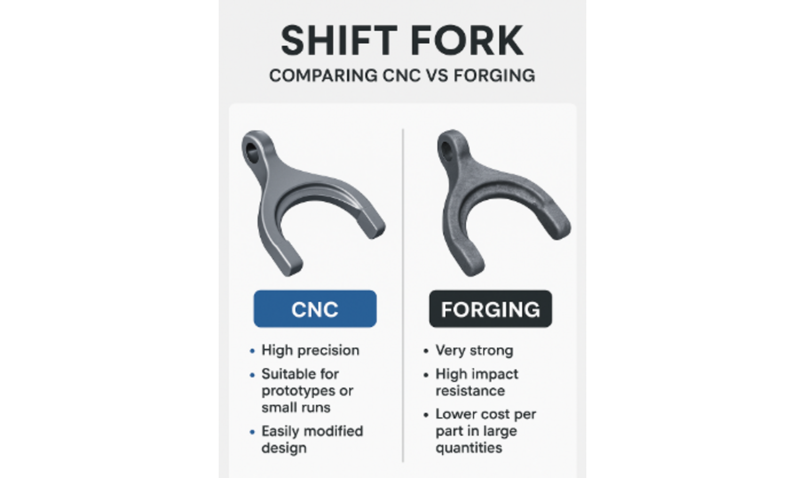シフトフォーク|最高の精度と強度を実現するためのCNC加工 vs 鍛造の比較