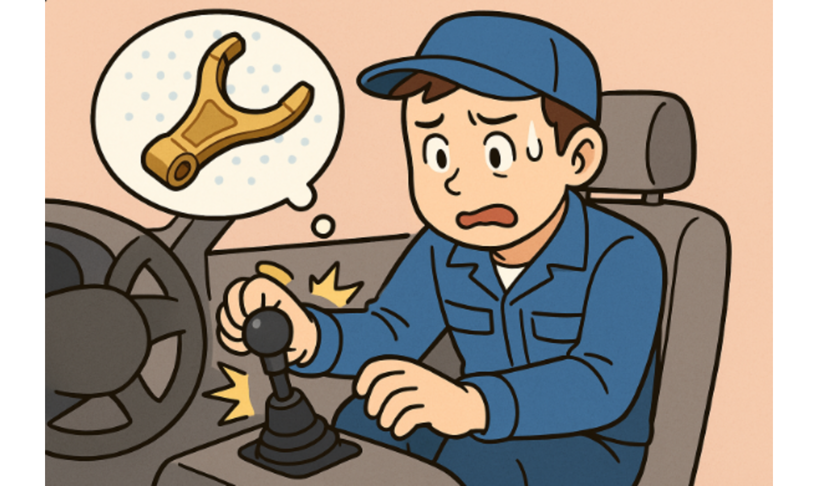 3. シフトレバーに抵抗がない – シフトレバーを動かしても“空”の感触がある場合、フォークの取付部が緩んでいるか破損している可能性があります。