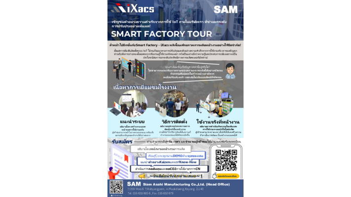 บริษัท Siam Asahi Manufacturing Co.,Ltd. เป็นบริษัทที่ตั้งอยู่ในประเทศไทย เชี่ยวชาญในการผลิตชิ้นส่วนเกียร์ที่มีความแม่นยำสูงสำหรับอุตสาหกรรมยานยนต์ นอกจากนี้ ตั้งแต่เดือนมิถุนายน 2022 ยังได้เริ่มให้บริการระบบการตรวจสอบ IoT ขั้นสูง “iXacs” เพื่อสนับสนุนการเพิ่มประสิทธิภาพในการผลิต สำหรับผู้ผลิตในประเทศไทย ความสามารถในการตรวจสอบสายการผลิตแบบเรียลไทม์และเพิ่มประสิทธิภาพเป็นสิ่งสำคัญอย่างยิ่งในการรักษาความสามารถในการแข่งขัน เรามุ่งมั่นที่จะให้บริการผลิตภัณฑ์และบริการที่ตอบสนองต่อความต้องการในท้องถิ่นและสนับสนุนการพัฒนาอุตสาหกรรมของประเทศไทยต่อไป