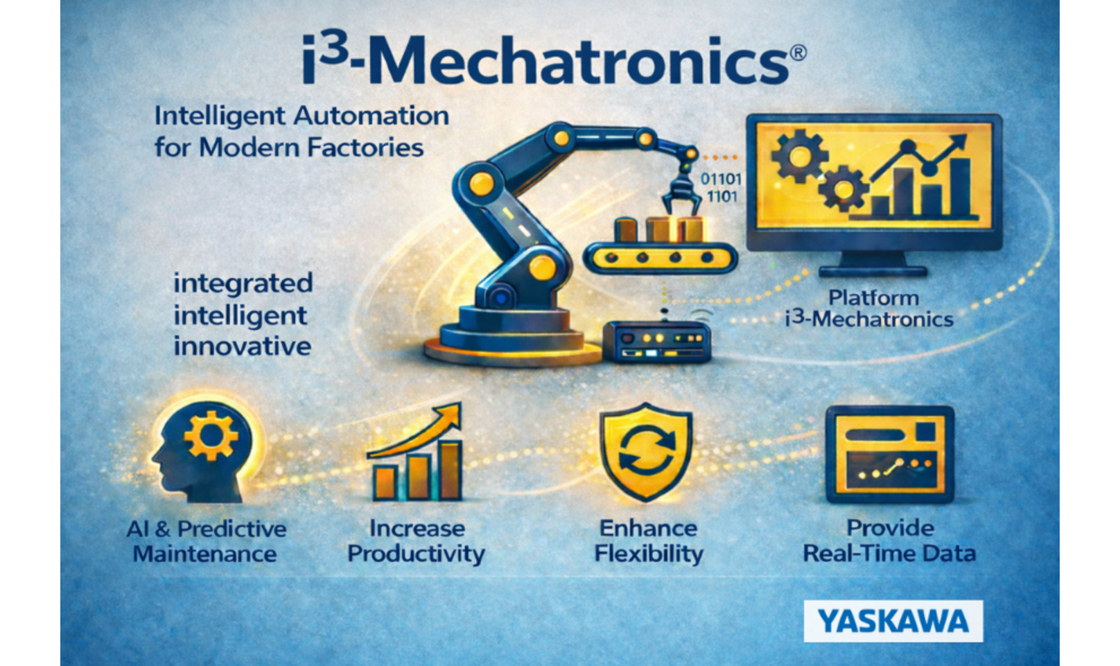i³-Mechatronicsは、YASKAWAが開発したコンセプトで、「i³」は integrated(統合)、intelligent(知能化)、innovative(革新) の3つの要素を意味します。これは、従来のメカトロニクスシステムに、IoT・AI・ビッグデータなどの先端デジタル技術を融合させることにより、生産・保守の効率を大きく向上させることを目的としています。