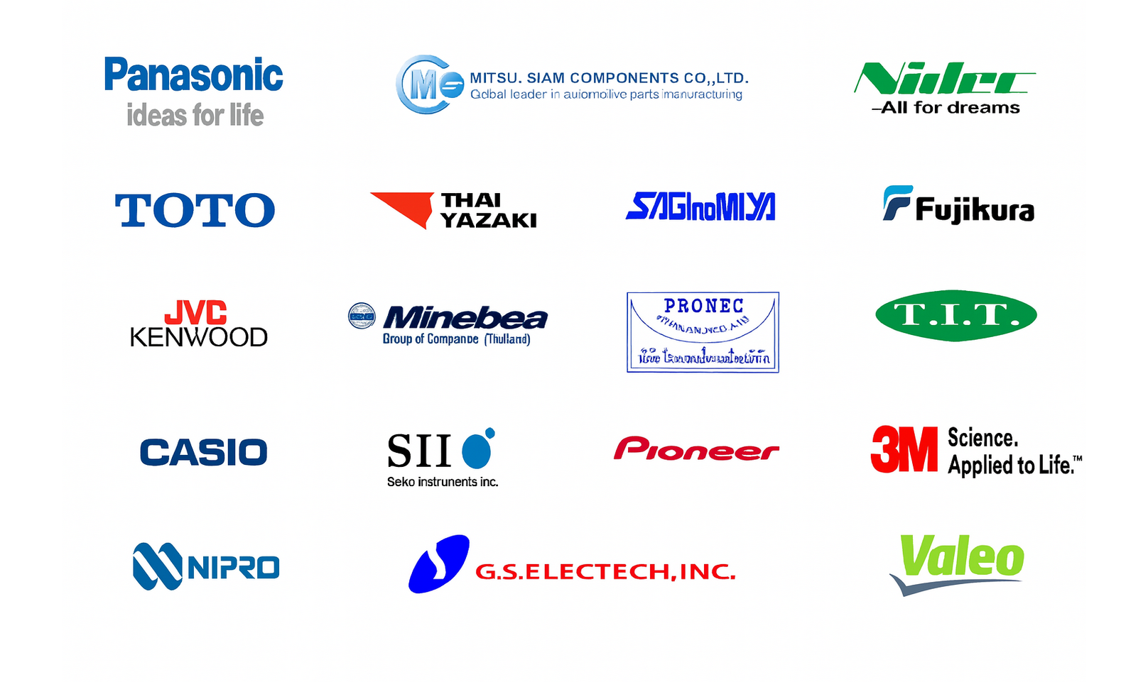 - ยานยนต์: Valeo, Nidec, Thai Yazaki, Mitsui Siam Components, G.S. Electech Inc.