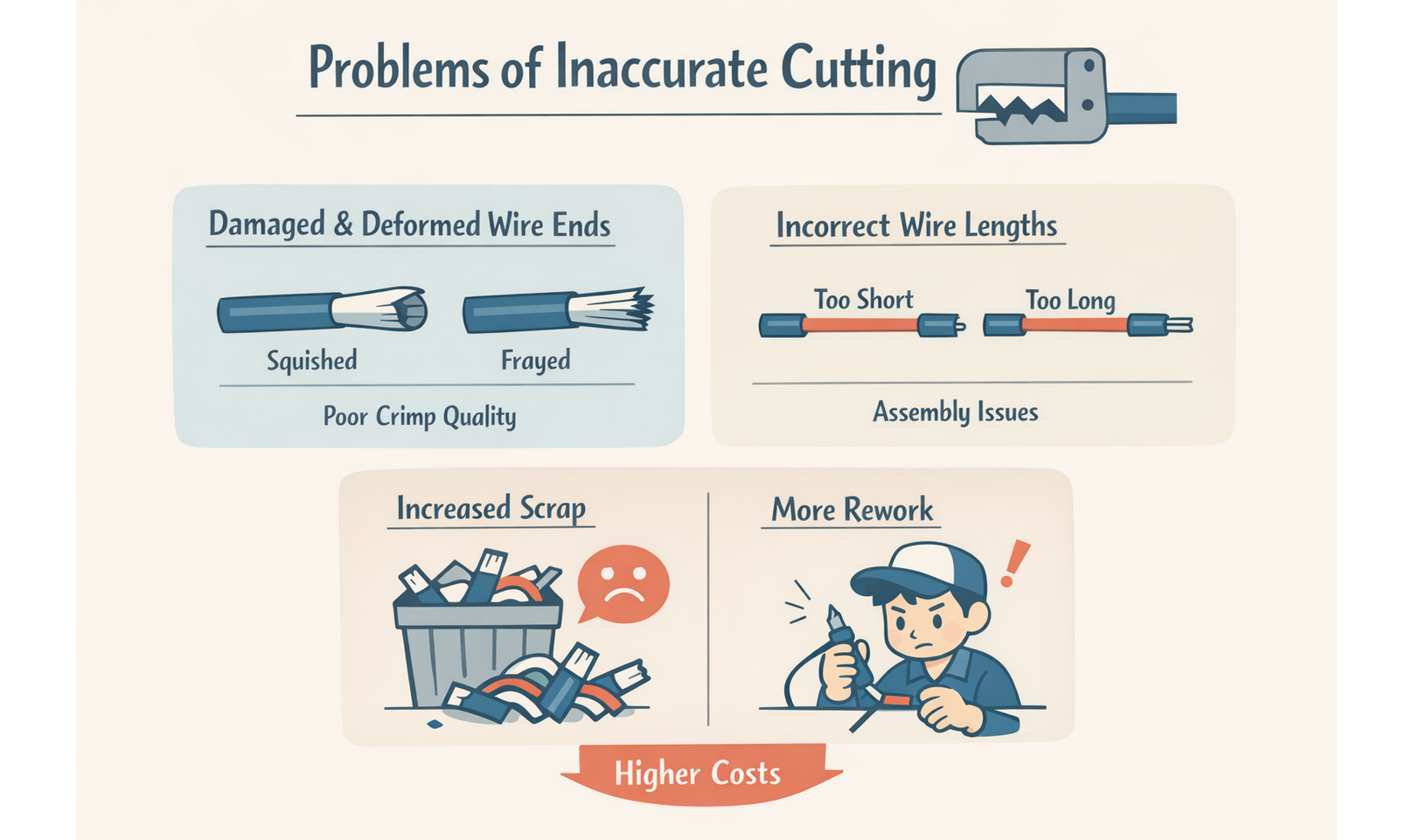In modern industrial production lines, especially for Wire Harness and terminal processing, wire cutting is not simply about “cutting through the wire.”