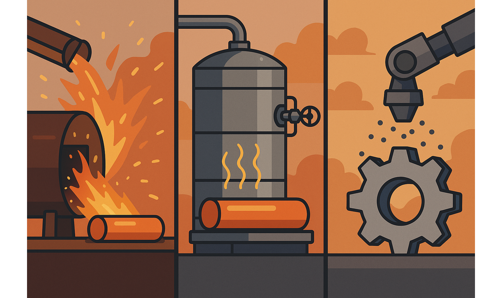 金属表面の硬化処理で用いられる炭素浸炭、窒化、ショットピーニング。各手法のメカニズム・効果・適用用途の違いを技術的に解説します。