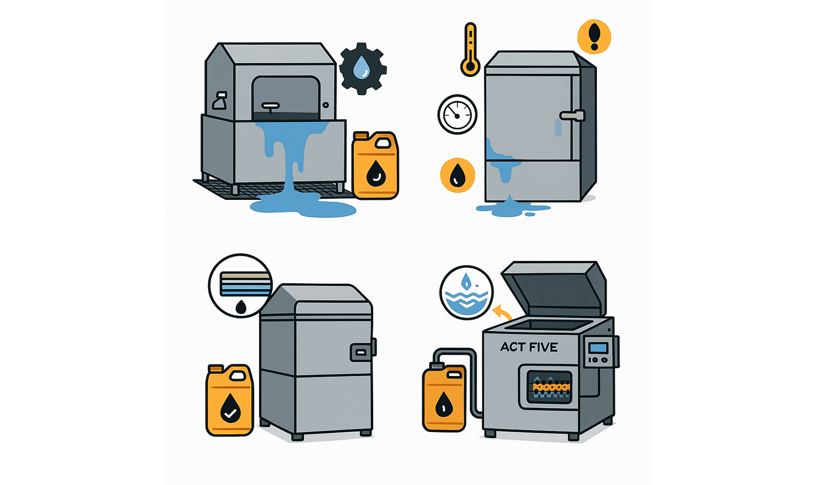 部品洗浄機 Act Five | 工場の洗浄液漏れを防ぎ、保守コストを削減
