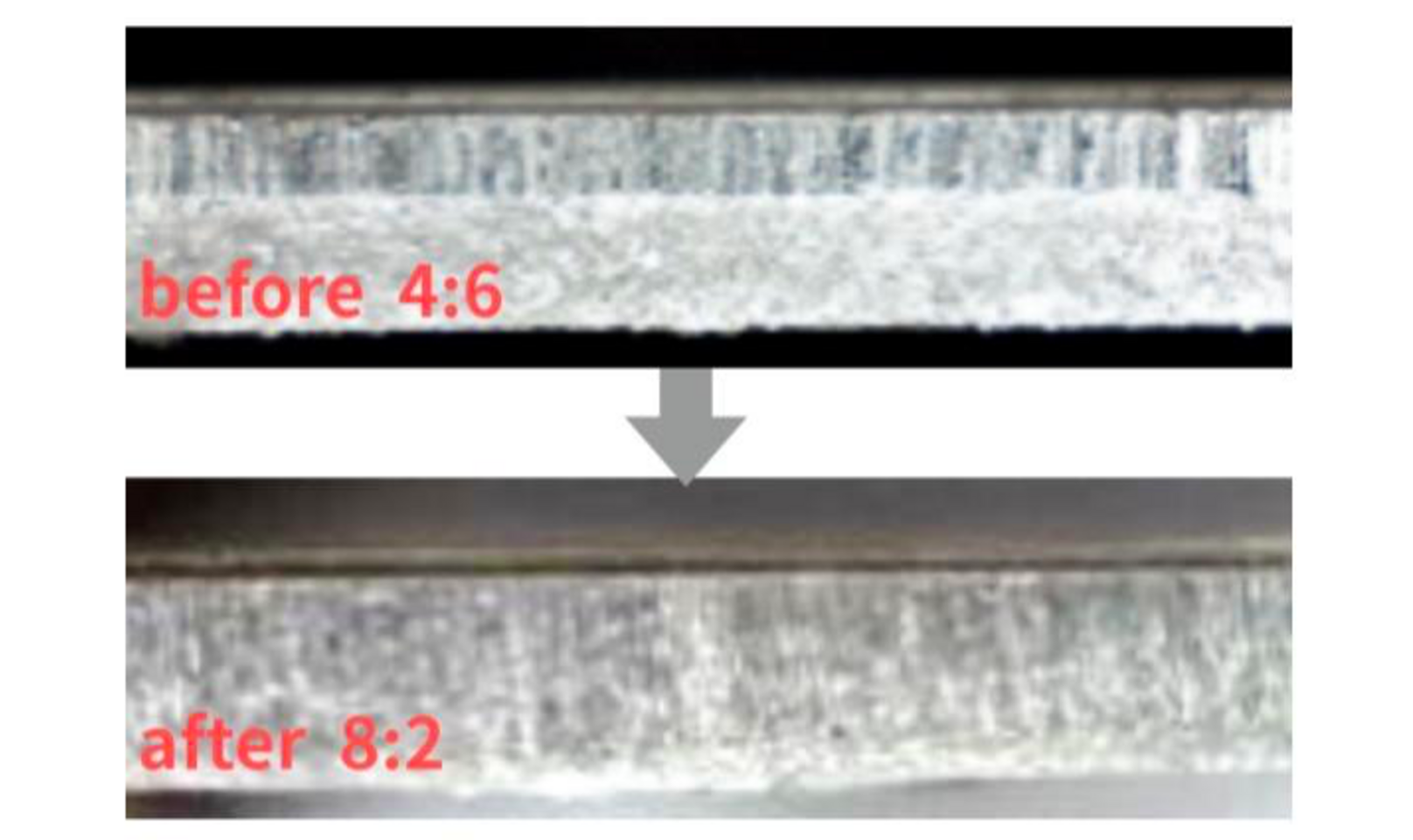 - Controlled ratio of shear surface to fracture surface (conventional 4:6 → achieved 8:2)