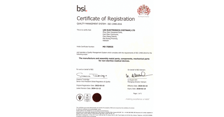 LEO ELECTRONICS(VIETNAM)LTD.は、ベトナム・ハイフォン省に生産拠点を構える、プレス・板金・金型・組立・ハーネス加工まで一貫対応可能な日系EMS企業です。