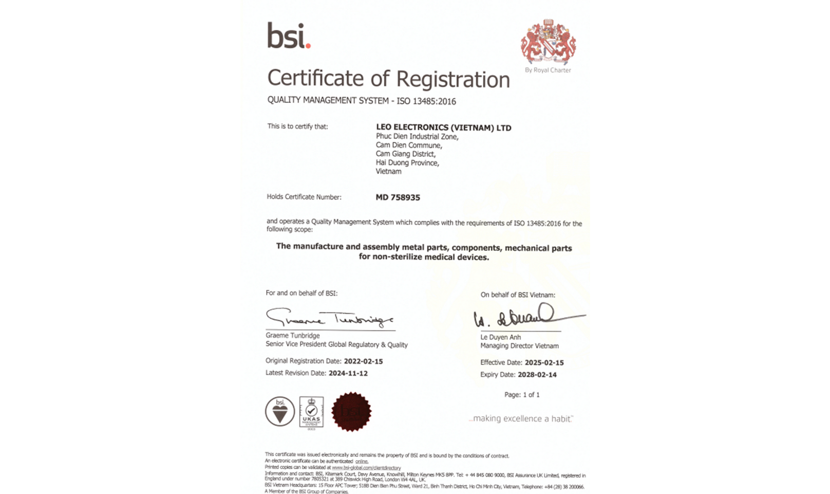 LEO ELECTRONICSベトナムは、ISO13485認証と医療機器製造登録を活かし、精密板金と組立を通じて医療機器のグローバル供給を支えます。