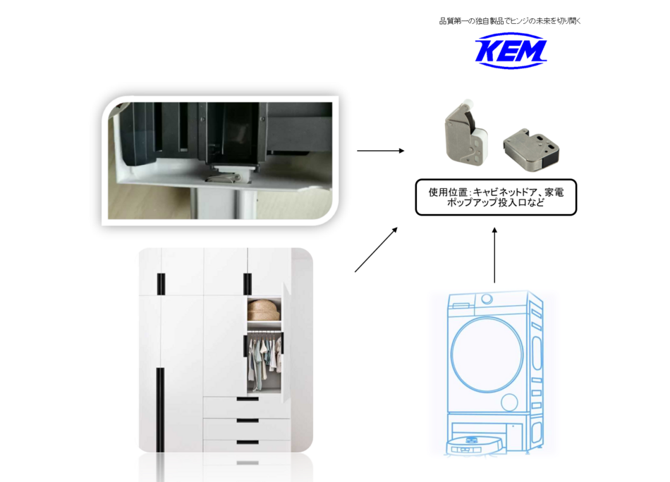 เราเป็นบริษัทญี่ปุ่นที่เชี่ยวชาญในการผลิตบานพับ (Hinge) และยังจัดจำหน่ายสปริง (Spring), ชิ้นส่วนโลหะปั๊มขึ้นรูป (Metal Stamping) และฉีดพลาสติก (Plastic Injection)