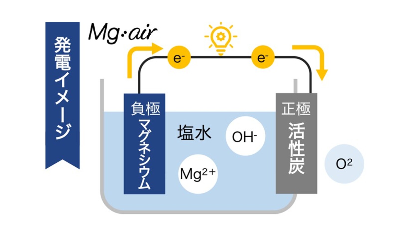 ในสถานการณ์ฉุกเฉิน แหล่งพลังงานที่ดีที่สุดคือ “สิ่งที่ใช้งานได้ทันทีโดยไม่ต้องพึ่งพาแหล่งไฟฟ้าอื่น” แบตเตอรี่ Mg:air แบบแมกนีเซียมอากาศ เพียงเติมน้ำเกลือก็สามารถผลิตไฟฟ้าได้ทันที ไม่ต้องชาร์จ ไม่ต้องเติมเชื้อเพลิง ใช้งานง่ายและปลอดภัย จนกลายเป็นมาตรฐานใหม่สำหรับการเตรียมพร้อมรับมือภัยพิบัติ