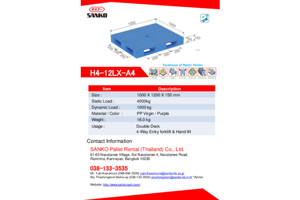 Plastic Pallet H4-12LX-A4 Catalog