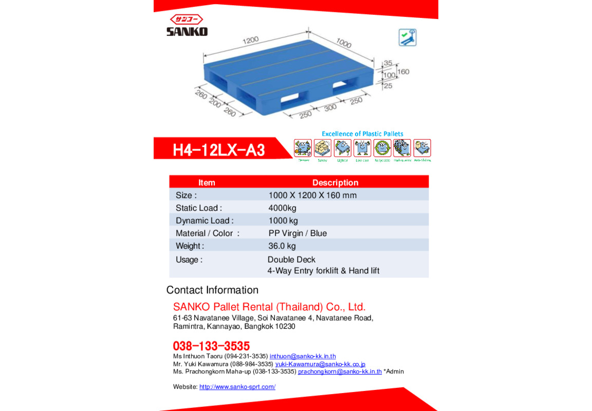 This is the inquiry form for SANKO Pallet Rental (Thailand) Co., Ltd.. Please enter your inquiry.